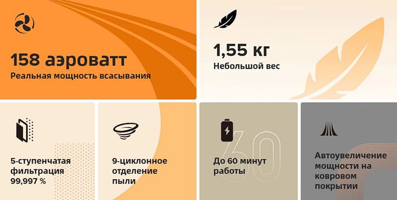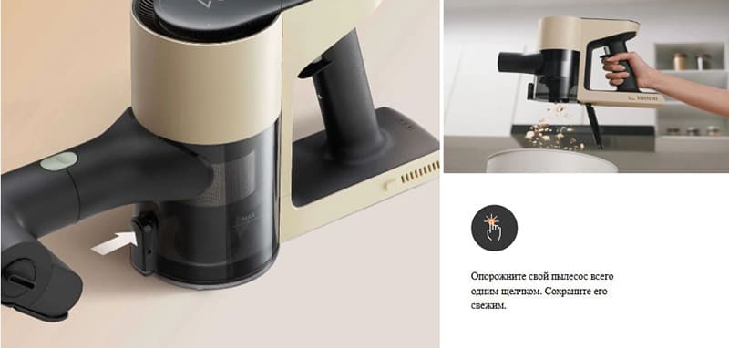 - 5-ступенчатая система очистки воздуха фильтрует до 99,997% частиц, запирая их в мусоросборнике