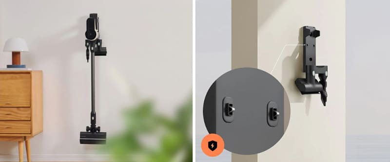 Удобное хранение пылесоса и насадок. Можно разместить в любом удобном месте. Храните все чистые насадки в аккуратном месте на настенной зарядной станции. В целях безопасности электроды отсоединяются, когда пылесос не находится на зарядной станции, даже если кабель зарядного устройства все еще подключен.
