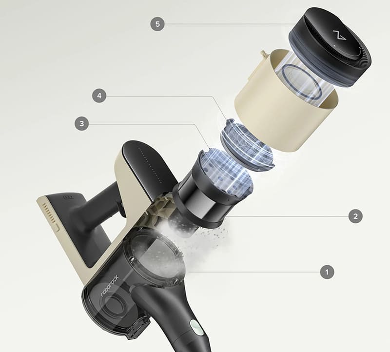 Благодаря 5-ступенчатой системе фильтрации, включая HEPA-фильтр, Roborock H5 способен улавливать до 99,997% микропыли размером до 0,3 микрон.