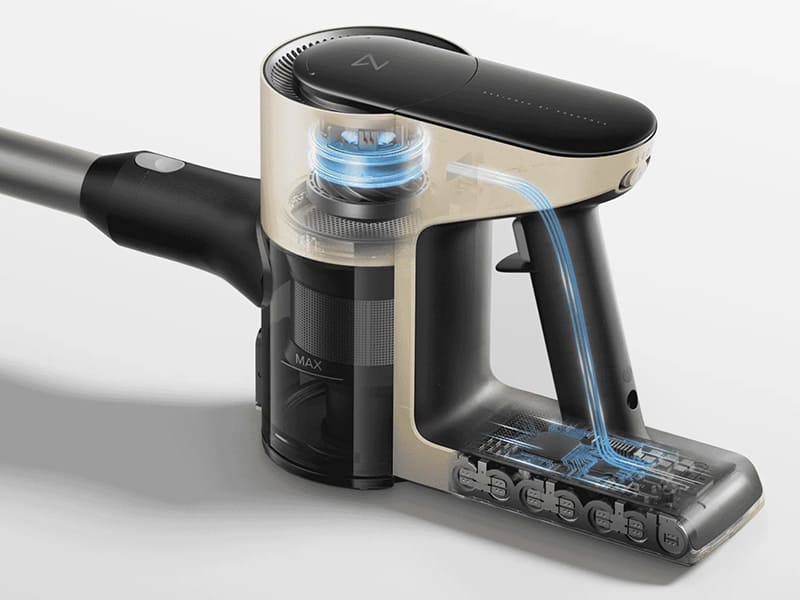 Тщательно рассчитанная и смоделированная система циклонной сепарации с 9 конусами создает мощную центробежную силу, которая осаждает пыль, мусор и другие крупные частицы в пылесборнике, гарантируя беспрепятственное прохождение воздуха через фильтр.