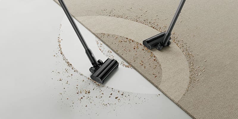 В стандартном режиме, когда основная щетка находится на ковре, она автоматически активирует функцию «Усиленная чистка ковра», обеспечивая лучшую чистоту при удалении пыли и волос с ковра.